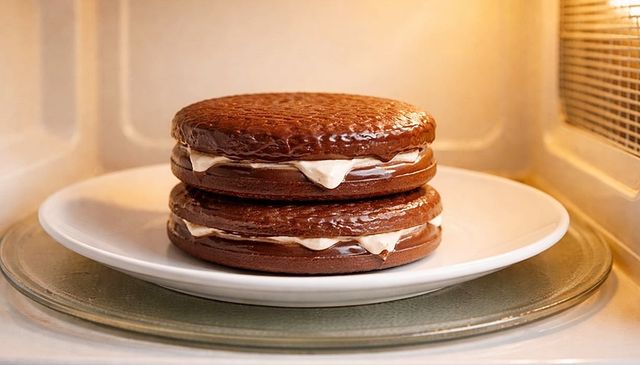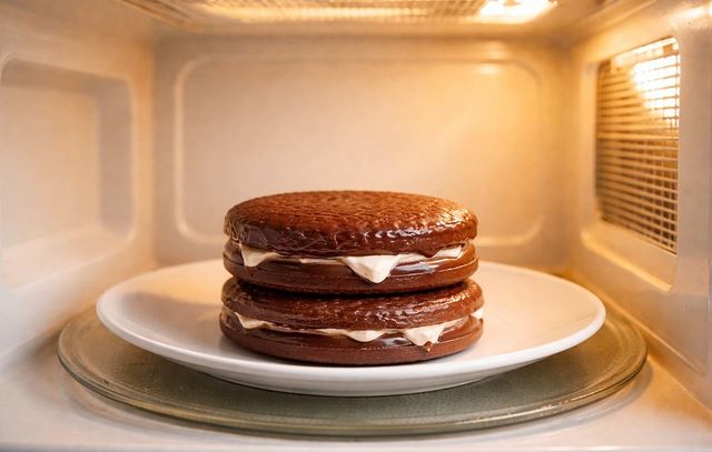 전자레인지에 초코파이를 놓은 모습. 기사 이해를 돕기 위해 AI를 활용해 제작한 자료 사진입니다. 실제 모습과 다소 차이가 있을 수 있습니다.