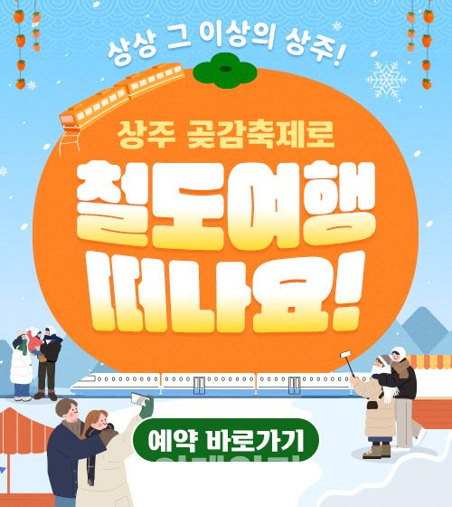 [이데일리 이선우 기자] 코레일관광개발이 지역축제와 연계한 당일 기차여행 한정 상품을 내놨다. 코레일관광개발은 경북 상주시와 협력해 ‘2026 상주곶감축제’와 연계한 기차여행 상품을 이달 24일 단 하루 운영한다고 밝혔다.