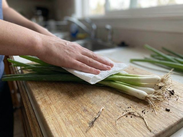 키친타월로 대파 물기 미리 닦아주기. 기사 내용 토대로 AI툴 활용해 제작한 자료사진.