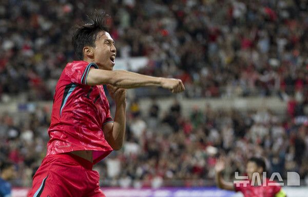 이날 왼쪽 날개로 선발 출전한 엄지성은 상대 진영 왼쪽 진영에서 오른발 슈팅으로 골문 상단 구석을 갈랐다.
