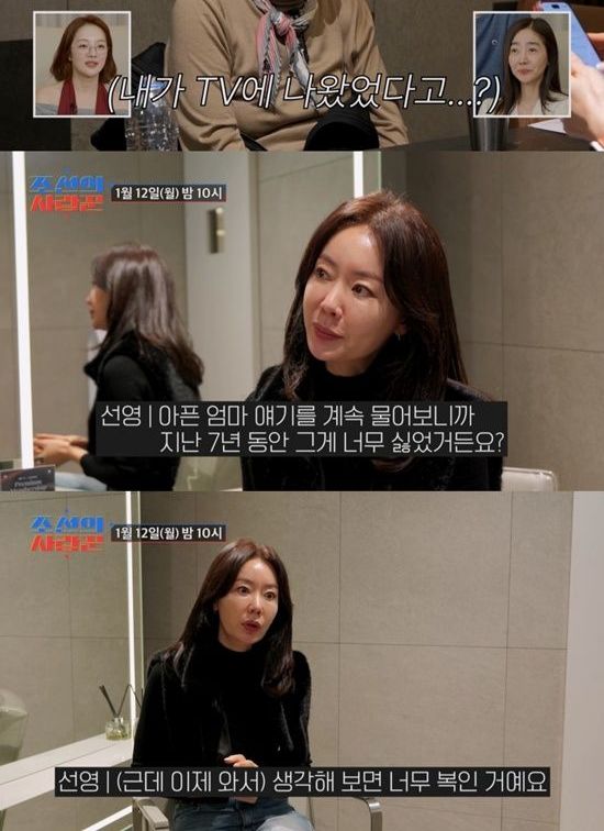 제작진과의 인터뷰에서 안선영은 "저는 옛날에 엄마를 방송에 데리고 나간 걸 너무 후회했다. 아픈 엄마 이야기를 계속 물어보니까 지난 7년 동안 너무 싫었다"고 숨겨왔던 속내를 꺼냈다.