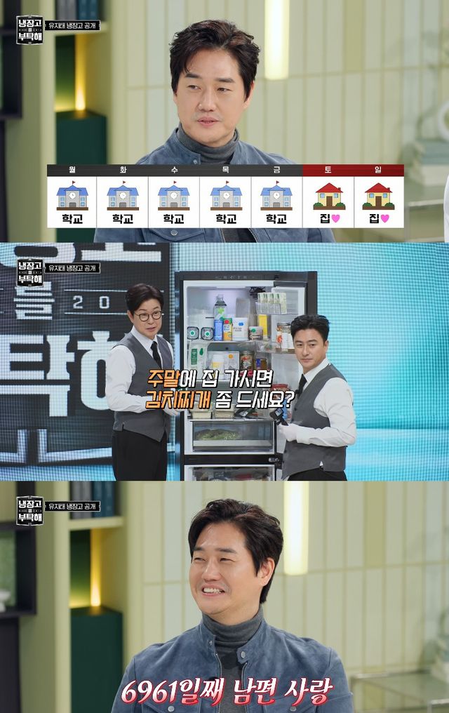 유지태는 작은 사이즈의 냉장고에 대해 "월요일에 수업을 12시간을 한다. 쉬는 시간이 없다. 연달아 (수업이) 붙어 있다"며 "식사는 15분 안에 해결해야 한다"고 설명했다.