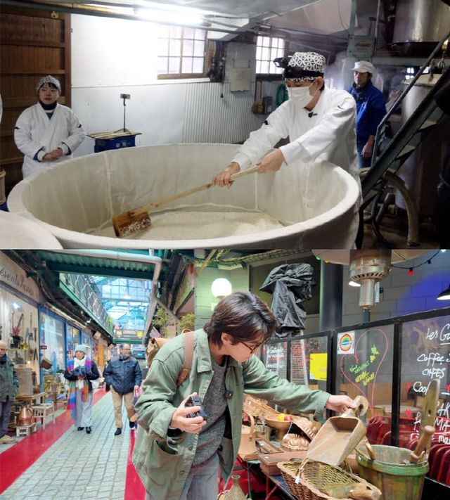 톡파원은 300년 이상의 전통을 지닌 이곳에서 2박 3일간 머무르며 사케 양조 과정을 배운다. 본격적인 체험에 앞서 톡파 =F 8은 복장을 갖춰 입은 뒤, 누룩의 바탕이 되는 밥을 짓는 체험에 나선다. 만들어진 밥을 직접 들고 나르는 톡파원의 고된 모습에 김대호는 “유배 가신 거 아니냐”라며 현실 반응을 보여 웃음을 유발한다.