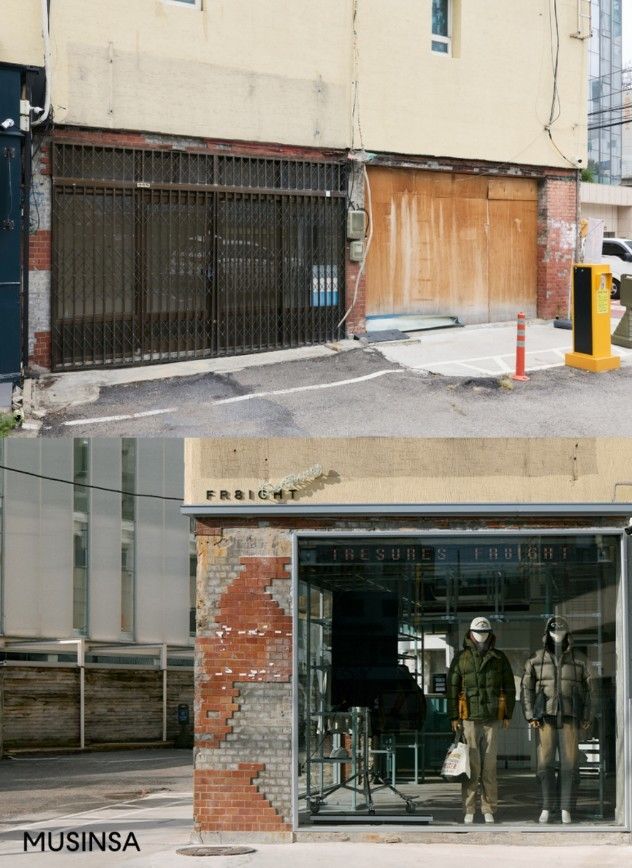 서울숲 프로젝트 1호 매장 '프레이트'로 재탄생한 공간 전후. / 무신사 제공