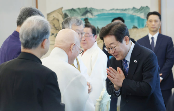 강 대변인은 "이번 행사는 새해를 맞아 국민 통합과 사회적 신뢰 회복이라는 시대적 과제를 다시 한번 확인하고, 분열과 갈등을 넘어 상생과 통합의 길로 나아가기 위해 종교계의 지혜와 역량을 경청하기 위해 마련됐다"고 설명했다.
