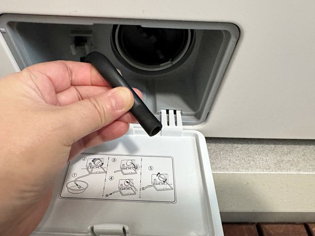 작은 커버 안에 검은색 호스 하나가 들어있어요.