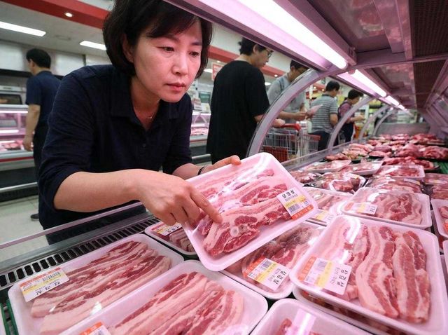 삼겹살 고르는 주부. 기사 내용 토대로 AI툴 활용해 제작한 자료사진.