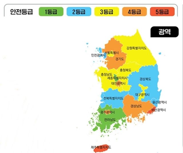 12일 행정안전부는 2024년 재난·안전 통계를 기준으로 2025년 지역안전지수를 공표했다. 지역안전지수는 재난안전법에 따라 지역별 안전 수준과 안전 의식을 객관적으로 진단·분석한 지표로 각 지자체가 안전에 관심을 갖고 취약 요인을 개선하도록 하기 위해 2015년부터 해마다 공표해 왔다. 지역 특성을 고려해 시·도, 시·군·구 등 5개 그룹별 상대 평가로 1~5등급을 부여하며 1등급에 가까울수록 안전하다는 의미다.