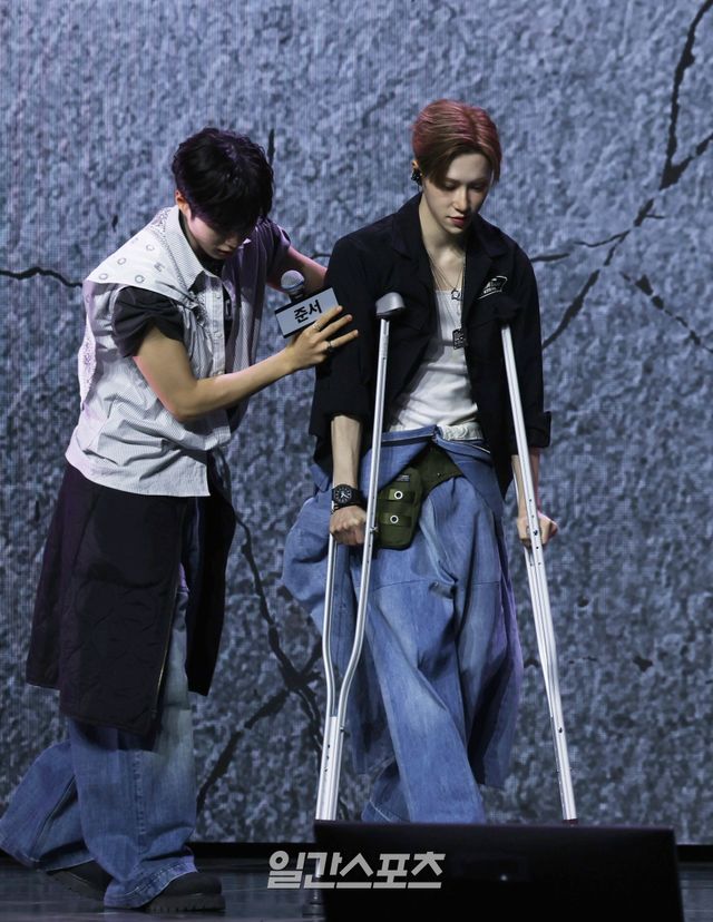이날 아르노는 목발을 짚고 무대에 올라 눈길을 끌었다. 이날 행사에 앞서 소속사 웨이크원은 “아르노는 지난 7일 데뷔 준비를 위한 공식 일정을 마친 후 이동하던 중 계단에서 발을 헛디뎌 넘어지게 된 계기로 병원을 방문했으며, 정밀 검사 결과 골절 진단과 함께 당분간 안무를 자제해야 한다는 전문의의 소견을 받았다”고 전했다.