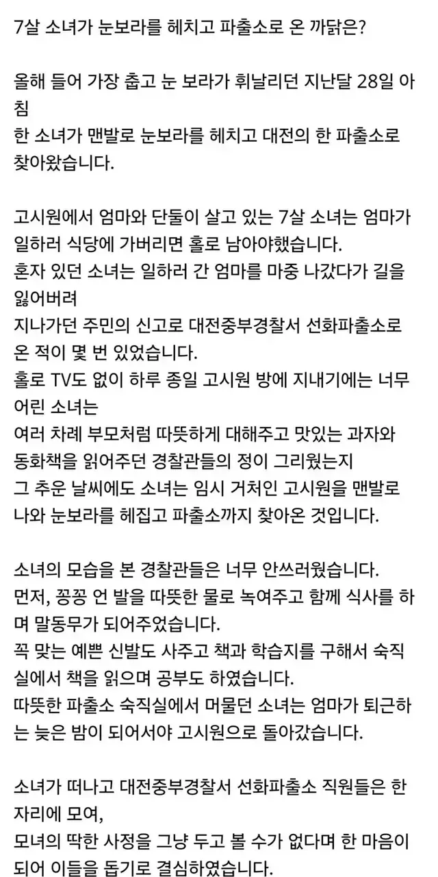 7살 소녀가 눈보라를 헤치고 파출소로 온 이유,,