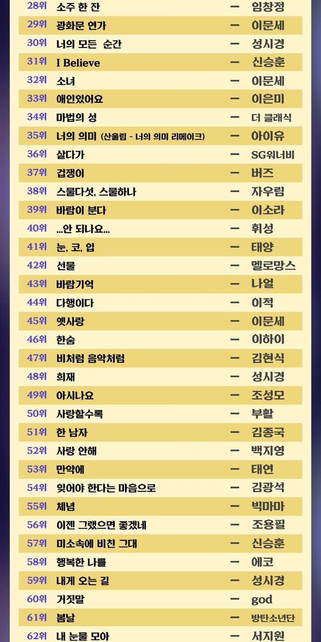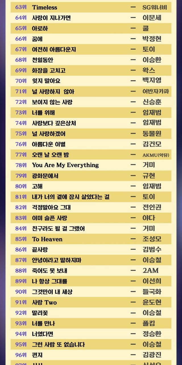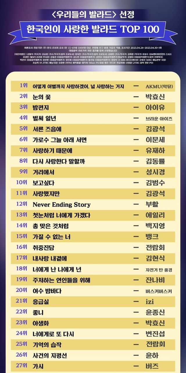 한국인이 사랑한 발라드 TOP 100