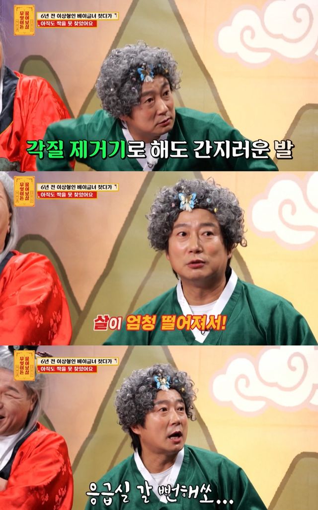 당황한 이수근은 "이건 재밌는 이야기다. 소파에 다리를 올려놨는데 하얀 가루가 나와서 와이프에게 각질 좀 제거하라고 욕을 먹었다"며 "따뜻한 물에 발을 불리고 쇠붙이로 밀었다. 하는데 간지럽더라. 그래서 더 세게 했다"고 이야기했다.