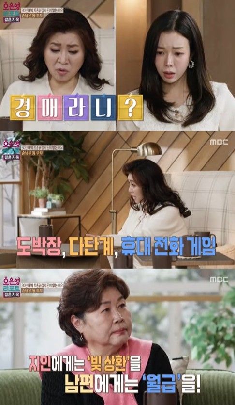 이어진 아내의 고백에 오은영 박사와 MC들은 충격에 휩싸였다. 아내는 "처음에는 지인끼리 100원짜리 화투를 쳤는데, 그 자리에 도박꾼이 있었다. 그 사람을 따라 도박장에 가서 됐고, 나중에는 스스로 찾아갈 정도로 빠졌다. 잃은 돈을 만회하기 위해 다단계에 손을 댔다가 결국 1억 넘게 잃었다"라고 털어놔 모두의 말문을 막히게 했다.