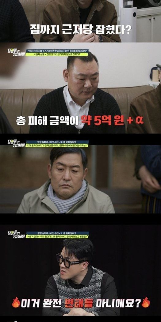 “아버지는 H건설 사장, 어머니는 갤러리 관장”이라고 자신을 소개한 해당 여성은 ‘100억 원’이 찍힌 통장을 보여주며 두 사람의 빚을 대신 갚겠다고 나섰다. 하지만 “보증을 잘못 서 통장이 압류가 됐다. 압류를 풀어야 채무를 갚을 수 있다”며 의뢰인의 어머니에게 돈을 요구하기 시작했다. 그렇게 100억 자산녀는 의뢰인 어머니의 모든 현금 자산을 가져간 것은 물론, 지인들에게까지 돈을 끌어오도록 압박해 수천만 원을 챙겼다. 여기에 그치지 않고, 의뢰인 어머니 명의로 직접 온라인 은행 대출을 받고, 텔레뱅킹 비밀번호를 알려달라고 해 본인 계좌로 돈을 빼갔다. 심지어 의뢰인 어머니가 살고 있는 집에는 근저당이 설정됐고, 아버지의 사망 보상금으로 구입했던 상가마저 경매에 넘어갔다.