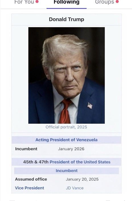 뉴시스 보도에 따르면, 해당 게시물에는 트럼프 대통령의 사진과 함께 ‘2026년 1월 현직’이라는 문구가 적혀 있었다.