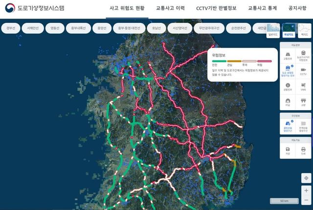 도로 살얼음 발생 가능 정보 / 기상청 도로기상정보시스템 캡처