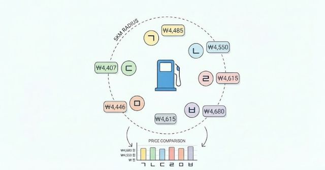 최저가 보장 할인 시스템은 위치 기반 데이터를 활용해 작동한다. 소비자가 결제하는 시점을 기준으로 해당 주유소 반경 5km 내에 있는 모든 주유소의 가격을 비교 분석한다. 비교 대상에는 GS칼텍스뿐만 아니라 SK에너지, S-Oil, HD현대오일뱅크 등 국내 4대 정유사가 모두 포함되며 알뜰주유소 가격까지 확인한다. 한국석유공사가 운영하는 유가 정보 사이트 오피넷의 데이터를 실시간으로 연동해 신뢰도를 확보했다. 소비자가 방문한 주유소 가격이 인근 최저가보다 비싸더라도 차액만큼 할인된 가격이 적용되는 구조다.
