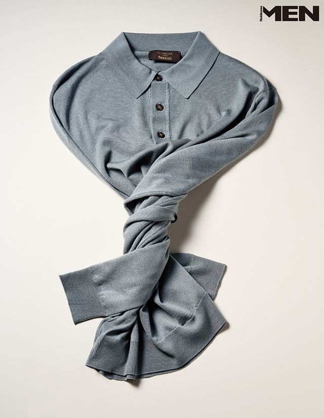 실용을 끌어올리는 기술 니트는 본래 유연한 물성을 지녔지만, 슬로웨어의 플렉스 울은 그 기준을 한 단계 더 끌어올린다. 엑스트라 파인 메리노 울에 신축 원사 라이크라를 결합해 놀라울 만큼 뛰어난 탄성과 강력한 복원력을 자랑한다. 입고 있다는 것조차 잊게 할 만큼 가벼운 착용감과 니트의 취약점인 보풀이 잘 생기지 않는 점도 인상적이다. 시간이 흘러도 새 옷처럼 착용할 수 있는 이 소재는 유행을 초월한, 시간을 견디는 옷이라는 슬로웨어의 지향점을 완벽하게 실현한다.