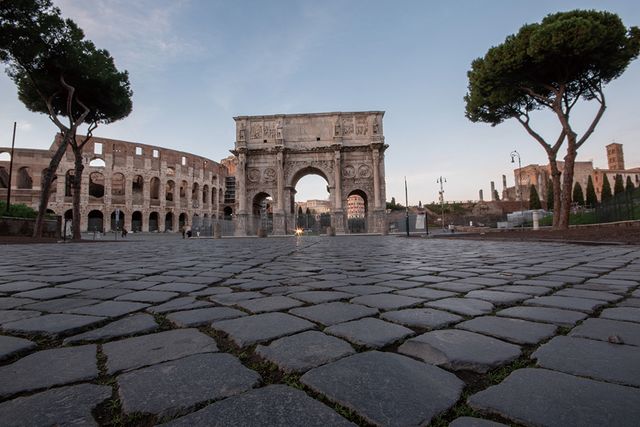 돌이 깔린 로마 거리의 풍경을 상징하는 보도블록, 산피에트리니.