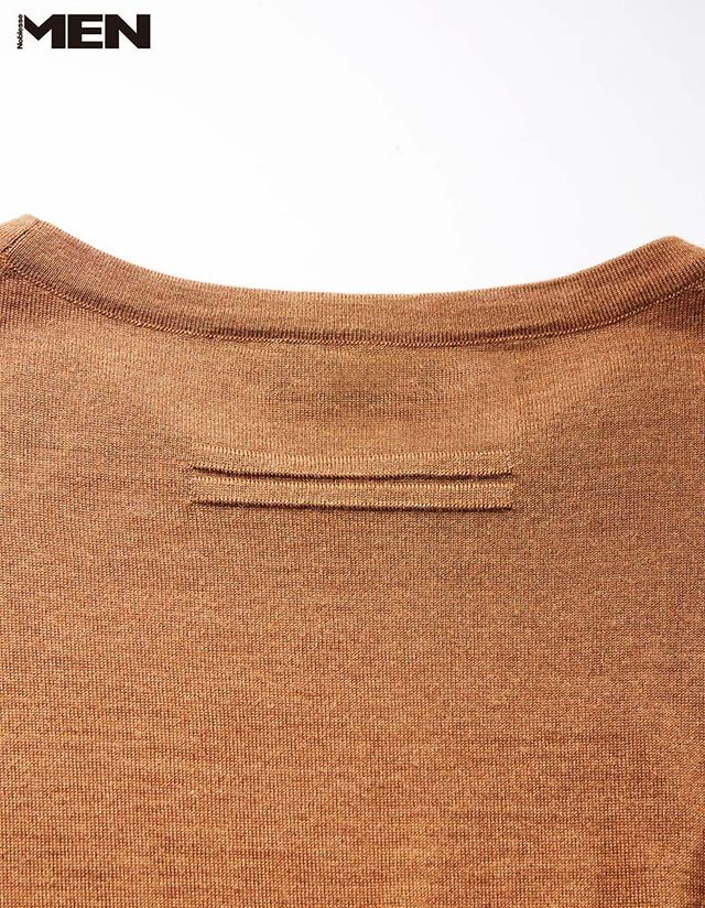 가느다란 실로 조밀하게 짠 파인 게이지 소재로, 얇고 자연스러운 드레이프를 선사한다. 몸에 안정적으로 감기는 구조를 위해 곳곳에 더블 스티치를 사용했다.