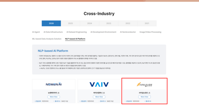 전경헌 사이냅소프트 대표는 "이번 2년 연속 선정은 사이냅소프트가 AI 시장 전반에서 실제적인 AI 솔루션을 제공해 온 결과"라며 "앞으로도 사이냅소프트의 다양한 AI솔루션과 서비스들로 기관과 기업의 AI 도입 장벽을 낮추는 기술 개발에 매진하겠다"고 전했다.