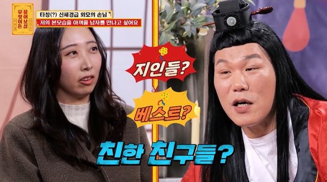 사연자는 34세 영어 과외 교사로, "제가 그렇게 생각하는 건 아니지만 주변에서 외모가 신세경급이라고 말한다"고 밝혔다. 이에 이수근이 "그럼 본인은 어떻게 생각하냐"고 묻자, 사연자는 "그냥 괜찮다고 생각한다"고 답해 웃음을 자아냈다.