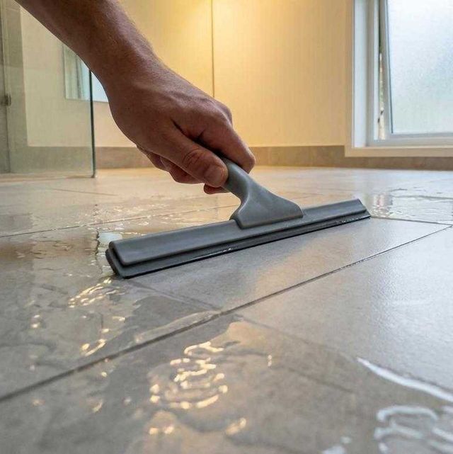 욕실 물청소 후 꼭 필요한 물기 제거 과정. 기사 내용 토대로 AI툴 활용해 제작한 자료사진.