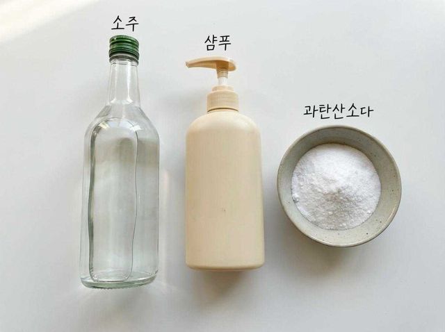 청소 전문가 문화진 대표에 따르면 이 방식의 핵심 재료는 세 가지다. 먼저 소주다. 소주의 알코올 성분은 세균 증식을 억제하고 표면의 기름때를 느슨하게 만든다. 단순한 탈취 수준이 아니라, 찌든 때가 쉽게 떨어지도록 바탕을 만들어주는 역할을 한다. 다음은 오래된 샴푸다. 유통기한이 지났거나 쓰지 않는 샴푸에 들어 있는 계면활성제가 욕실 오염의 주범인 피지, 비누 찌꺼기, 물때를 분해한다. 마지막은 과탄산소다다. 표백과 탈취 기능을 동시에 맡아 줄눈과 실리콘에 낀 착색을 옅게 만든다.