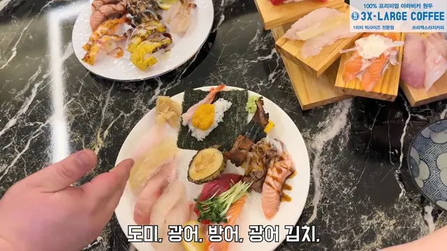 접시가 저래버리니 마치 쿠우쿠우에서 초밥 담아놓은줄...