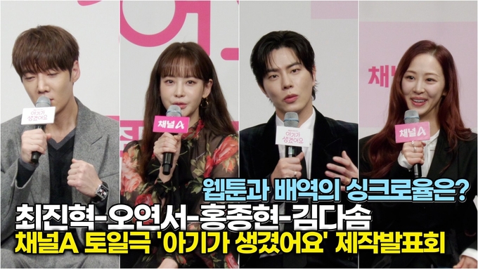 [뉴스인스타 양철수 기자] 1월 13일(화) 오후, 서울시 구로구 신도림동 더링크서울, 트리뷰트포트폴리오 호텔에서 채널 A 새 토일드라마 '아기가 생겼어요' 제작발표회가 열려 배우 최진혁, 오연서, 홍종현, 김다솜이 참석해 공통 인터뷰를 진행하고 있다.