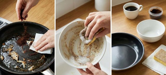 또한 '기름기 제거'에도 쓰임새가 있다. 커피가 지닌 지방 성분이 기름기를 녹여줄 수 있기 때문이다. 일례로, 생선을 구운 프라이팬 등에 커피 가루를 뿌려주고 녹인 뒤 키친 타월로 문질러가며 닦아내 보자. 이후 따뜻한 물로 헹궈주면 기름기가 한결 줄어든 것을 볼 수 있다. 더불어 세제와 함께 커피가루를 소량 섞어 기름진 그릇을 세척하면 조금 더 수월하게 기름 제거 효과를 얻을 수 있다.