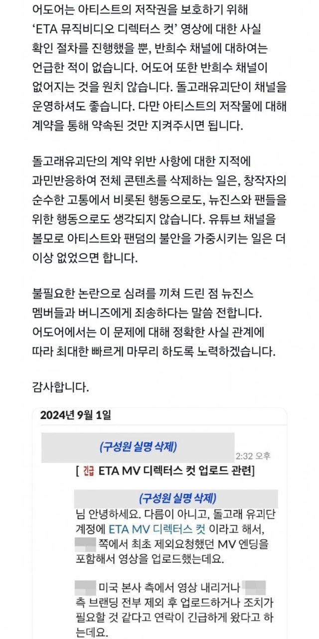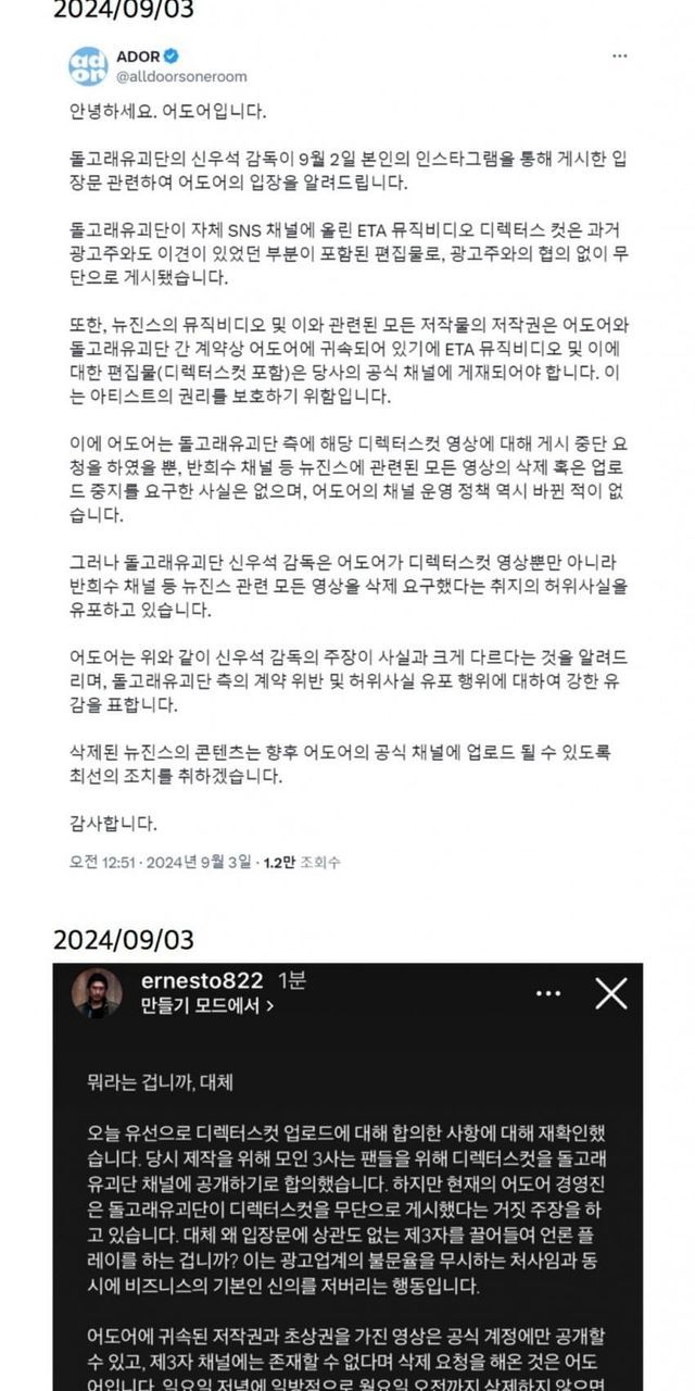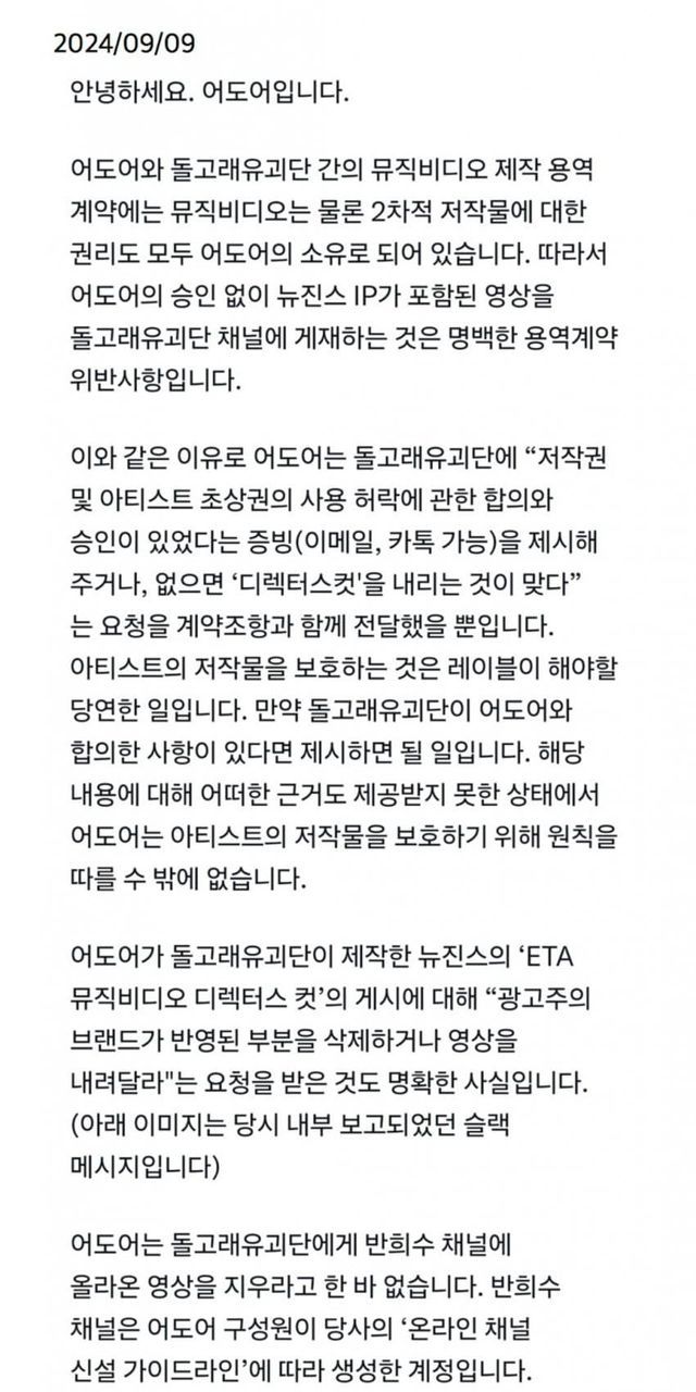어도어가 10억원 이상의 손배 소를 제기한 이유 또한