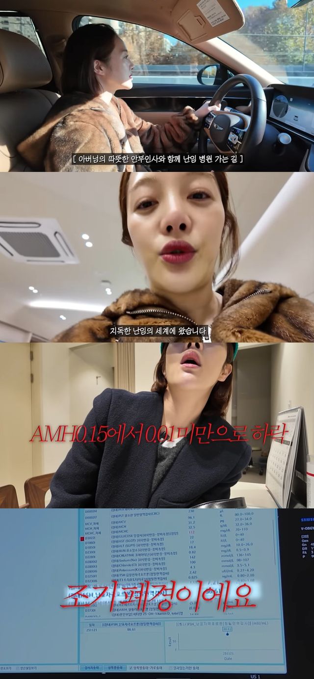 이어 황보라는 검진 결과까지 공개했다. 전문의는 "결과가 좀 떨어지게 나왔다. 0.01 미만으로 나왔다. 난포 자극 호르몬수치도 보면 예전 단어로 조기폐경이라고 한다"는 결과를 전했다.