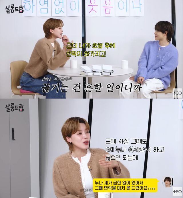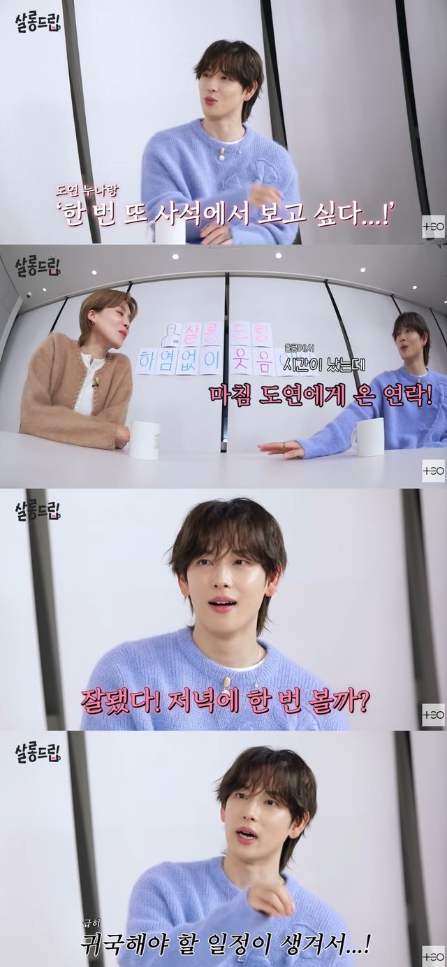 임시완은 "그 생각만 하다가 홍콩에서 시간이 났는데 마침 누나에게 먼저 연락이 왔다. 그래서 '잘됐다. 저녁에 한 번 볼까' 했다"고 이야기했고, 장도연 또한 "먼 곳에서 만나면 재밌지 않나"라고 당시를 회상했다.