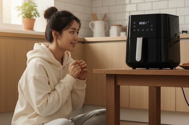 에어프라이기에서 음식이 다 되기만을 기다리는 사람. 기사 내용을 바탕으로 AI가 생성한 자료사진.