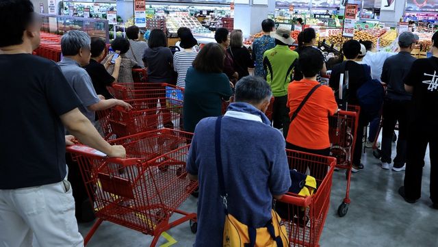 롯데마트 제타플렉스 서울역점에서 고객들이 마트 오픈을 기다리는 모습. / 뉴스1