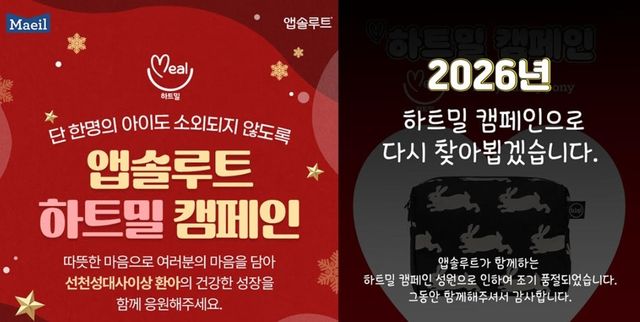 앱솔루트의 '하트밀 캠페인'이 조기 종료 됐다. / 매일유업 제공