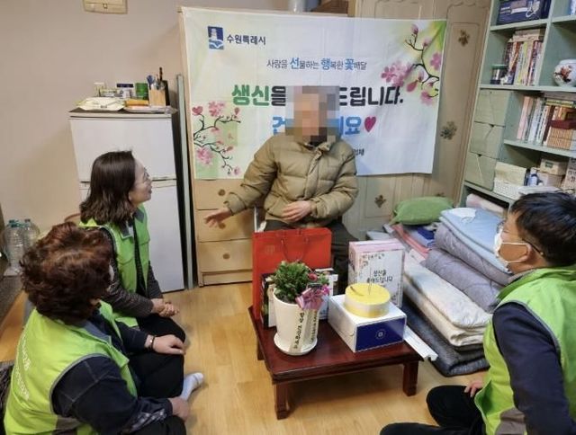 [와이뉴스] 수원시 팔달구 화서2동 지역사회보장협의체는 지난 13일, 관내 저소득 홀몸 어르신 가정을 직접 방문해 생신을 축하 드리고 안부를 확인하는 ‘사랑을 선물하는 행복한 꽃배달(선행꽃) 사업을 추진했다.