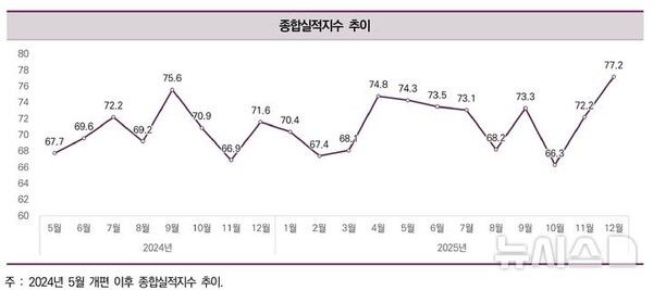 뉴시스 보도에 따르면, 한국건설산업연구원(원장 이충재)은 지난해 12월 CBSI가 전월 대비 5.0p 하락한 77.2을 기록했다고 14일 밝혔다.