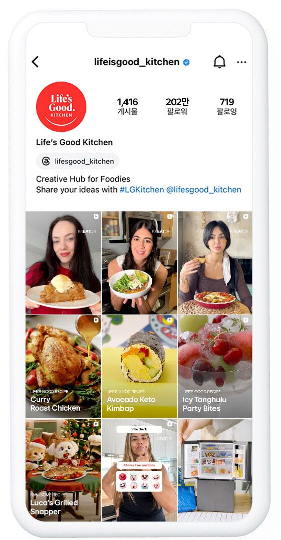 14일 업계에 따르면 LG전자가 SNS 인스타그램에서 운영 중인 공식 계정 ‘Life’s Good Kitchen’의 팔로워 수가 200만 명을 넘어섰다. 이는 LG전자가 2021년 개설한 글로벌 가전 전문 채널이다. 오븐과 인덕션, 냉장고 등 주방 가전을 중심으로 라이프스타일 정보와 활용 팁을 소개하는 게 특징이다.