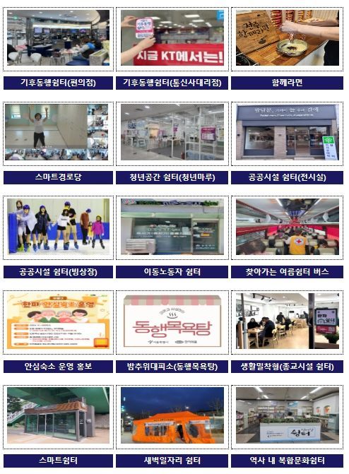 이 외에도, 대전 대덕구의 그린통합 스마트쉼터, 부산 사하구의 청년 쉼터, 전남 화순군의 문화프로그램 연계 쉼터 등이 지역 주민이 체감할 수 있는 쉼터 운영 사례로 소개됐다.