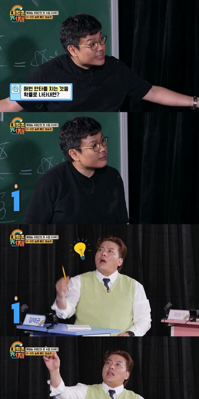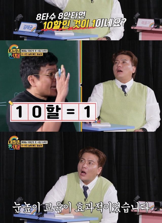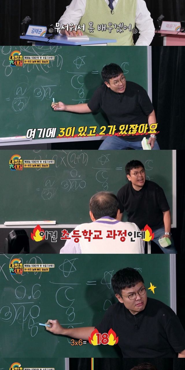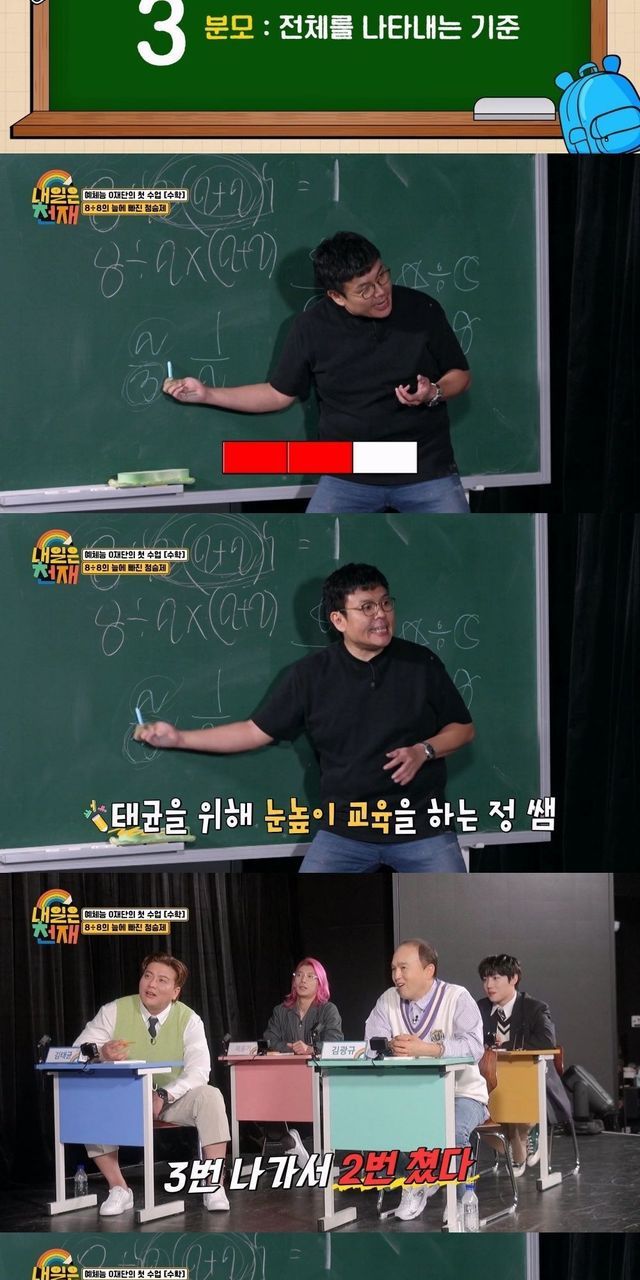 2나누기3 과정을 보여주는 동안 별다른 리액션 없이 보고 있었던 김태균은