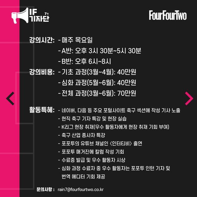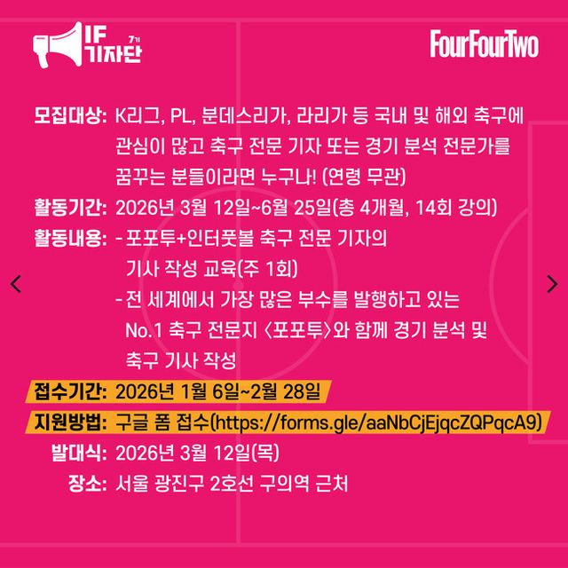 전 세계에서 가장 많은 부수를 발행하고 있는 ‘No.1’ 축구 전문지 포포투가 축구 전문 기자 아카데미 <IF 기자단> 7기를 모집한다.