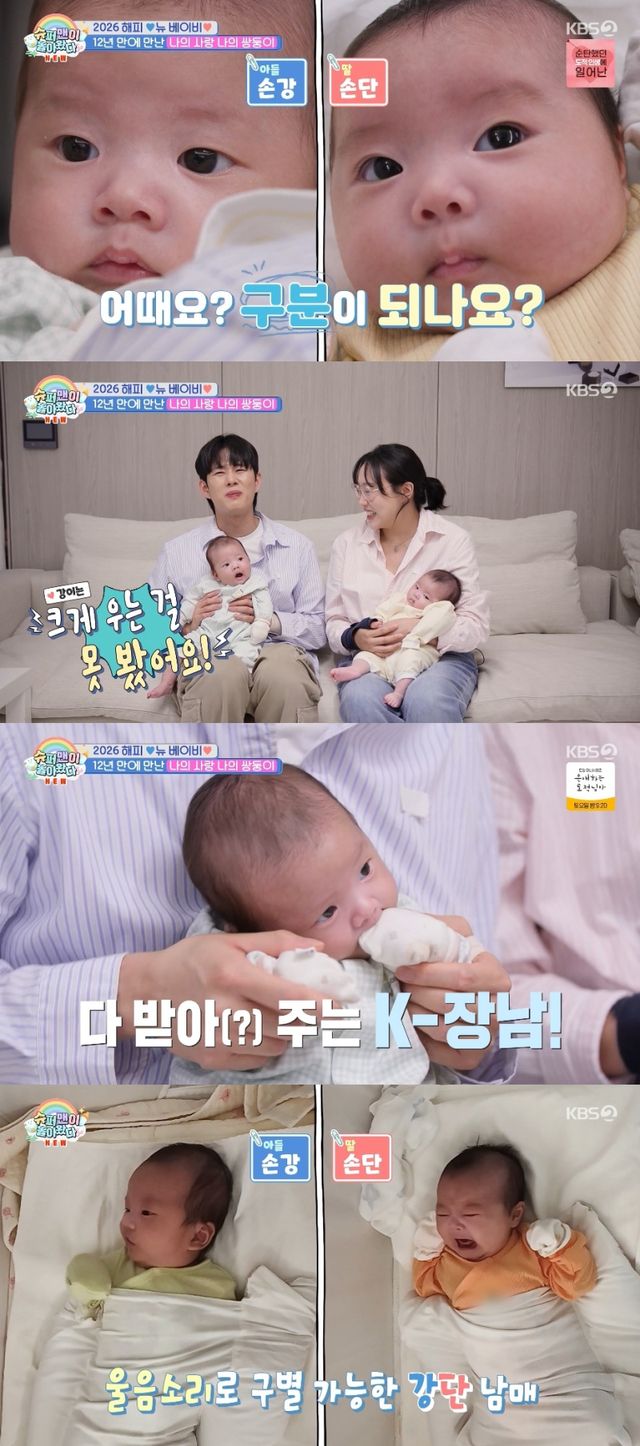 아이들의 성격 차이도 공개됐다. 랄랄은 “강이는 되게 의젓하고 순하다”고 말했고, 김민수는 “강이는 크게 우는 걸 거의 본 적이 없다. 그냥 흐느끼는 정도”라고 설명했다. 반면 “단이는 울 때 바로 ‘아악’ 하고 운다”고 덧붙여 웃음을 안겼다.