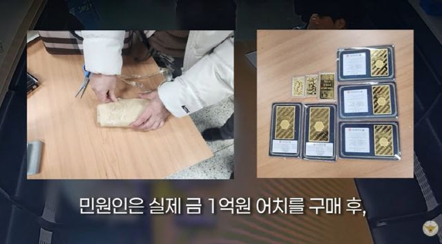 A씨는 “카드 배송 기사라는 사람에게서 전화가 와 ‘당신의 신상정보가 누출되었을 수 있으니 금융감독원 1332로 전화해보라’고 하더라. 아니면 ‘재산 중 1억원을 금으로 바꾸고 우리에게 검수 받으면 해결된다’고 했다”고 경찰에 설명했다.
