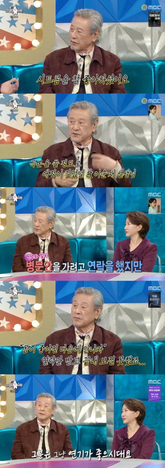 그리고 이날 박근형은 故 이순재를 회상하기도 했다. 박근형은 "그 분은 현장에서 모두를 위해 배려를 정말 많이 하시는 분"이라면서 "'하이킥' 이후에 시트콤을 정말 좋아하셨다. 직접 극본을 쓸 정도였고. 돌아가시기 전까지 시트콤을 하시고 싶어했다"고 말했다.