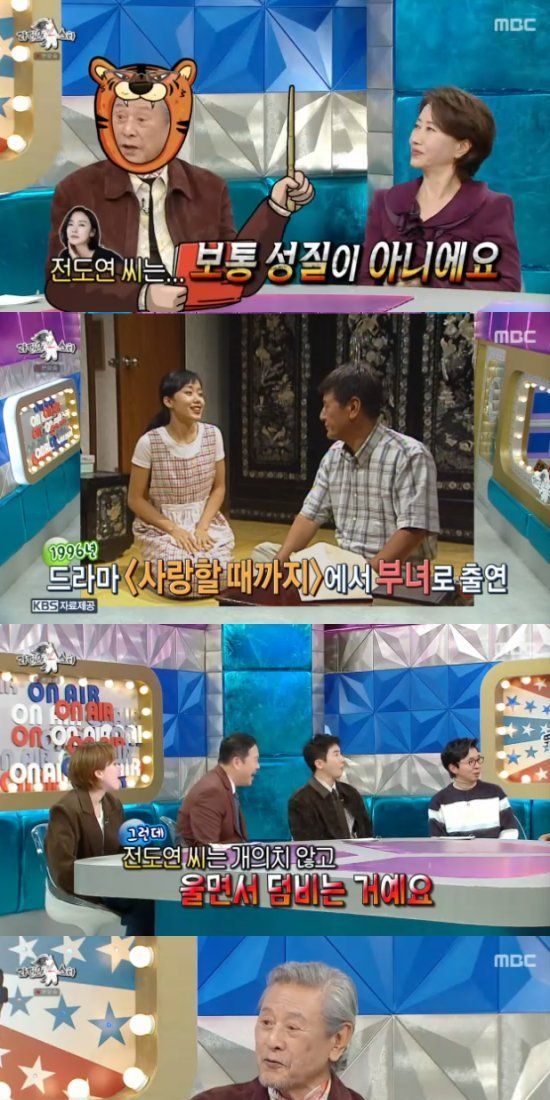 전도연에 대해서는 "'사랑할 때까지'라는 드라마에서 부녀 사이로 출연을 했다. 전도연은 보통 성질 아니다. 당시에 대사를 기계적으로 하는게 신경이 쓰였다. 6개월 정도 함께 연기를 해야하는데, 조언을 해야겠다 싶었다"고 말했다.