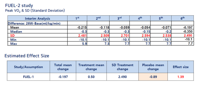 우선 이번 중간분석에서 1차 유효성 평가 지표인 최고산소섭취량(Peak VO₂) 변화의 표준편차(SD)는 2.490으로 집계됐다. 분석 인원은 180명이다.