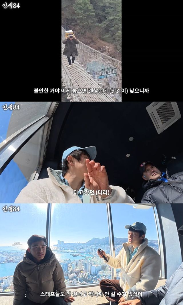 이어 "그리고 옆에 난간이 낮았다. 높으면 괜찮은데 낮으니까 불안한 거다. 옆에 보면 공황이 올까봐 땅만 보고 갔다. 이 악물고 했다"고 털어놨다.
