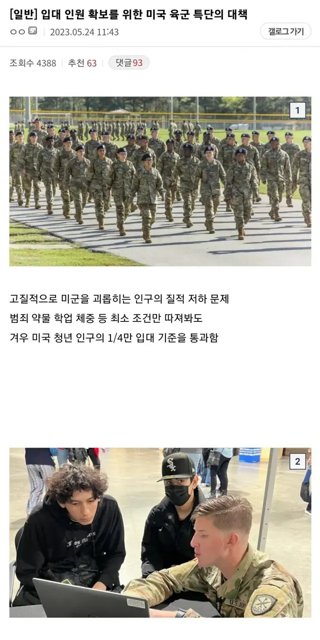 입대인원 확보를 위한 미국 육군 특단의 대책